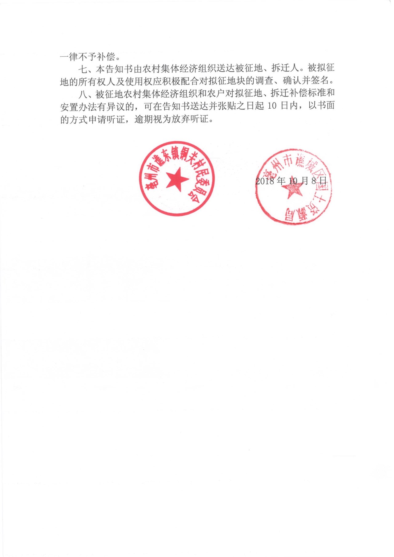 亳州市三清大道(东绕城快速)工程拟征地安置途径告知书谯国土告字(244)号