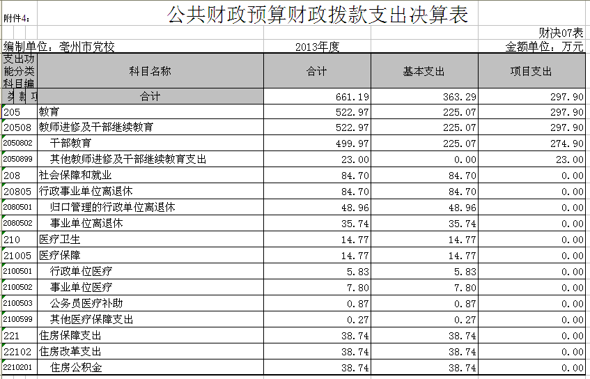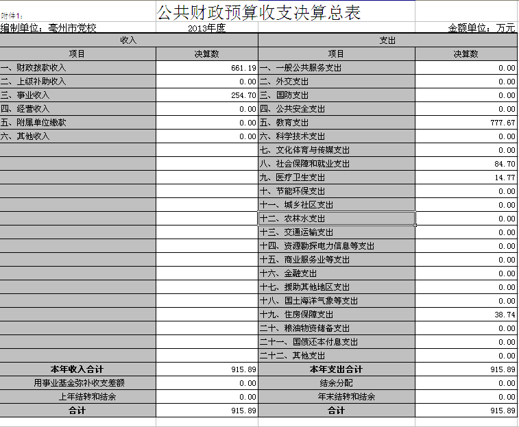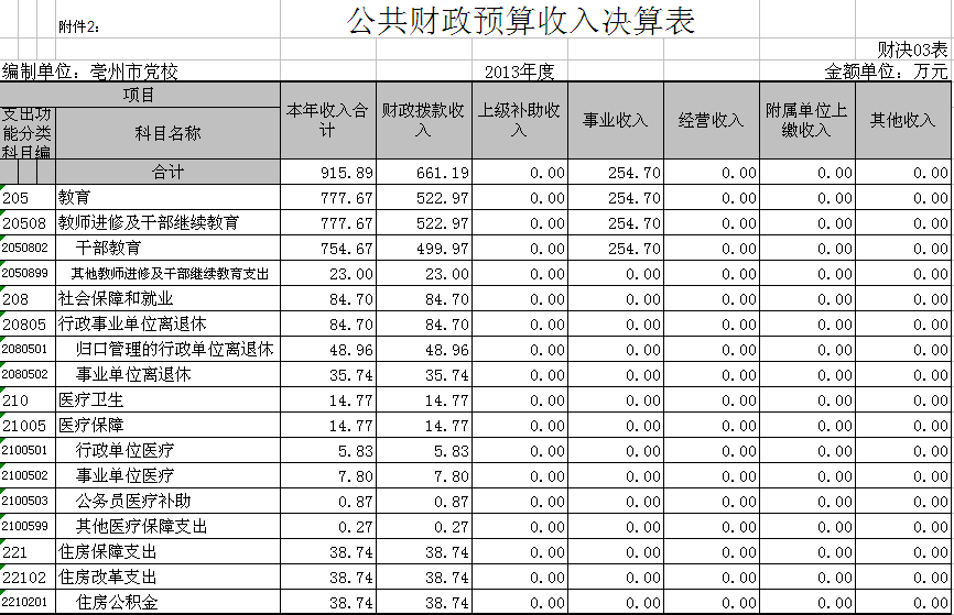 | 名称: | 亳州市委党校2013年部门决算情况 |