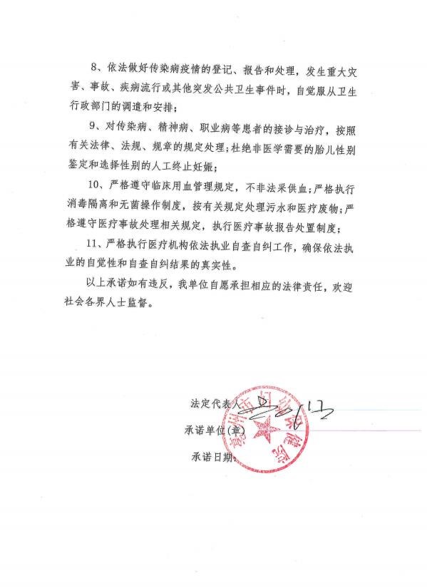 | 名称: | 医疗机构依法执业承诺书 | 文号: | 无 |