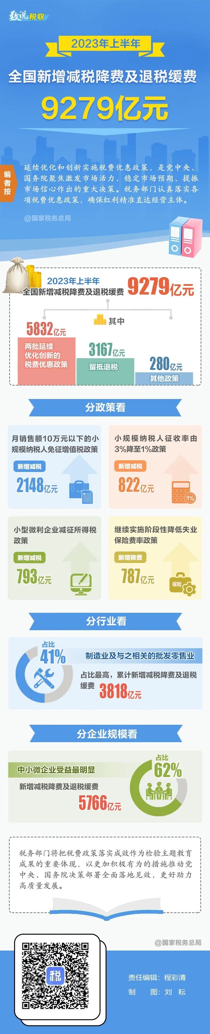 | 名称: | 2023年上半年全国新增减税降费及退税缓费9279亿元 |