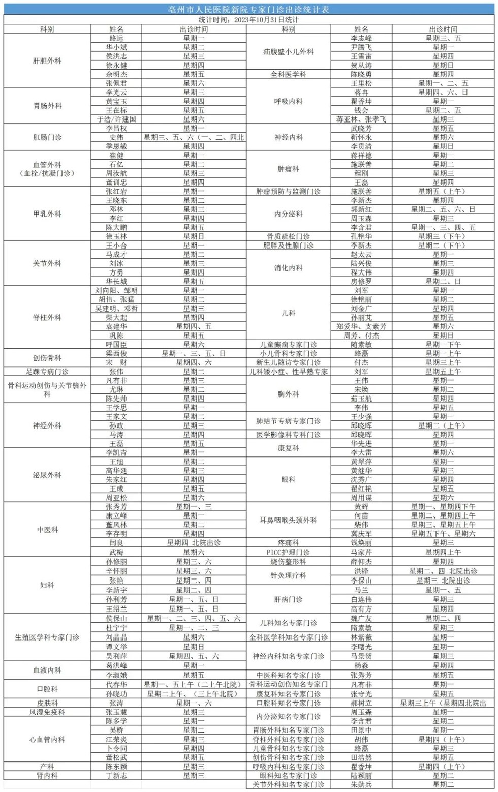 | 名称: | 市人民医院2023年11月份门诊专家排班,请查收! |