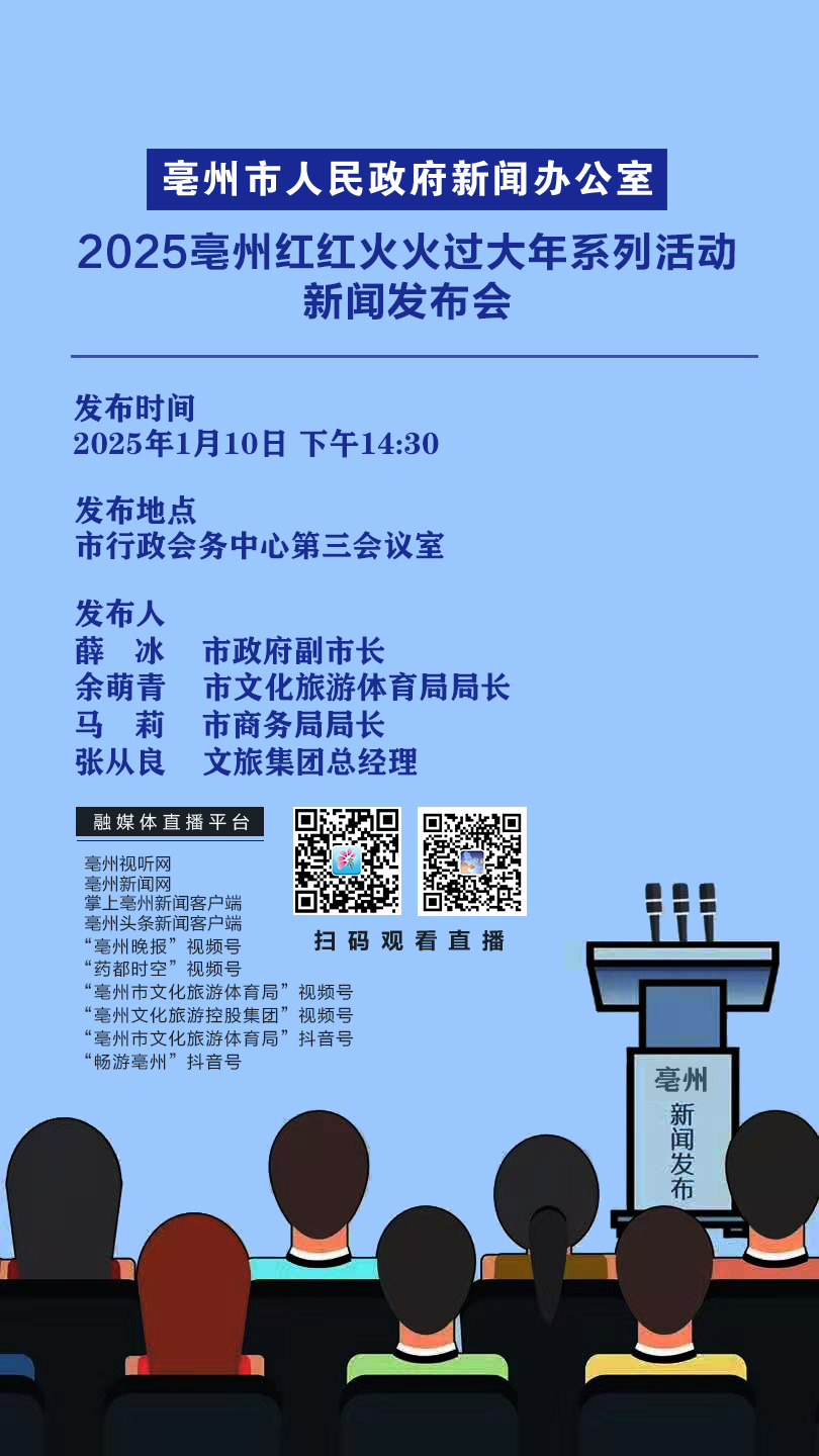 | 名称: | 2025亳州红红火火过大年系列活动新闻发布会预告 | 文号: | 无 |