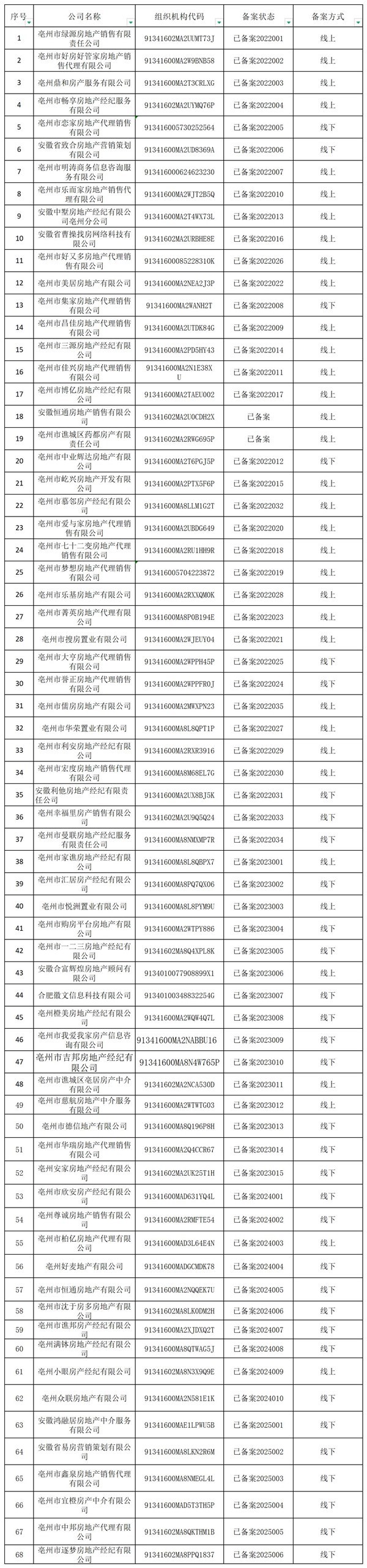 | 名称: | 亳州市住房发展中心经纪机构备案公示(2025年8月份) |