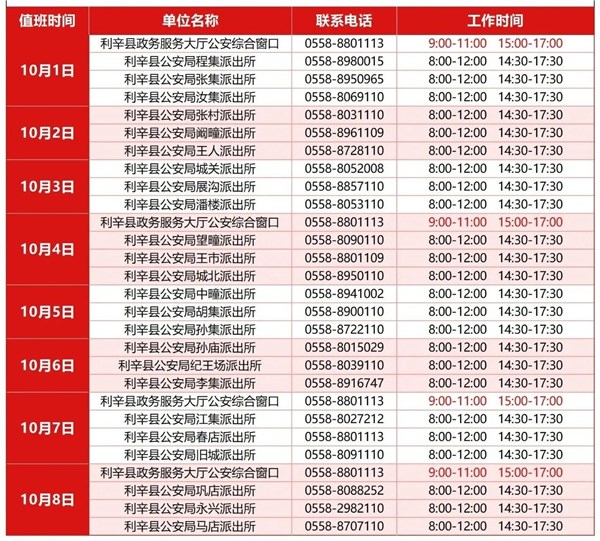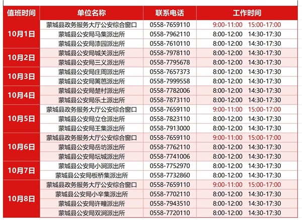 | 名称: | 转发+收藏,2025年国庆中秋假期亳州公安政务服务值班表来啦! |