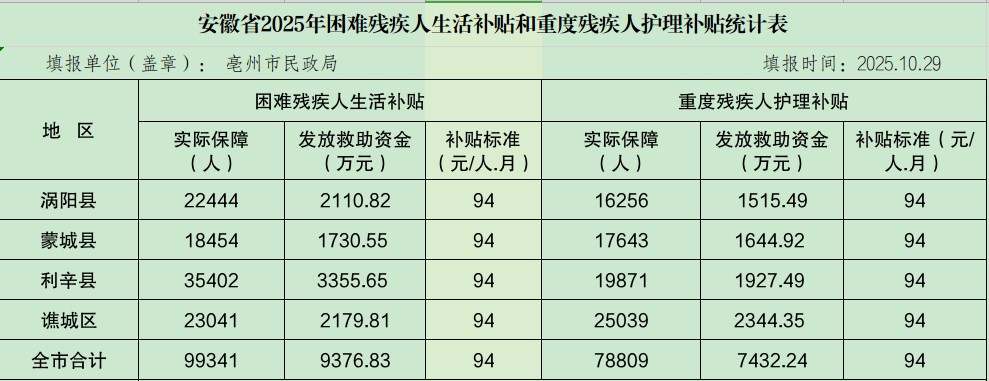 | 名称: | 2025年10月残疾人两项补贴数据支出情况 |