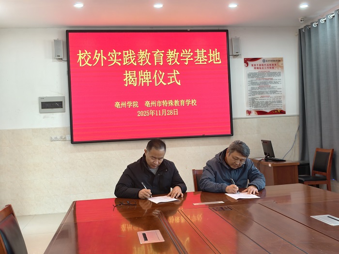 | 名称: | 亳州特教学校:举行亳州学院校外实践基地揭牌签约仪式 |
