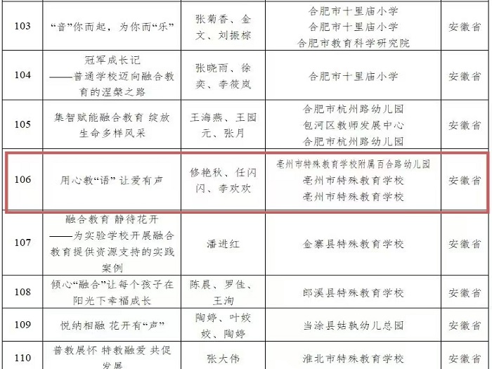 | 名称: | 亳州特教学校案例入选全国融合教育优秀案例名单 |