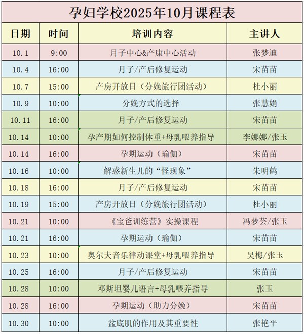 | 名称: | 【孕妇学校】10月份课程表来啦!可以约课了~ |