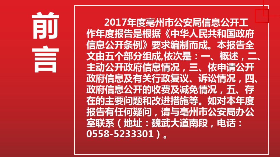 亳州市公安局2017年度政府信息公开工作报告.doc【23 KB】