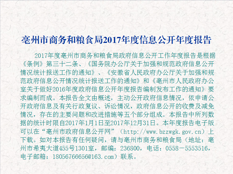 亳州市商务和粮食局2017年度信息公开年度报告.pptx【523.7 KB】