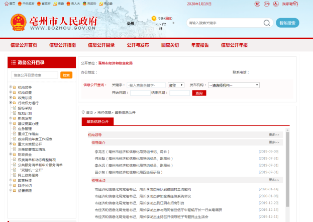 2019年,亳州市经济和信息化局坚持以习近平新时代中国特色社会主义思想为指导,全面贯彻落实党的十九大和十九届二中、三中、四中全会精神,认真落实习近平总书记视察安徽重要讲话精神,扎实开展新修订的《中华人民共和国政府信息公开条例》的宣传学习工作,创新工作方式,完善制度规范,努力发挥政府信息对企业发展和群众生活的服务作用,助力推进亳州工业经济高质量发展。