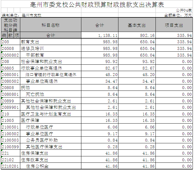 | 名称: | 亳州市委党校2014年部门决算情况 |