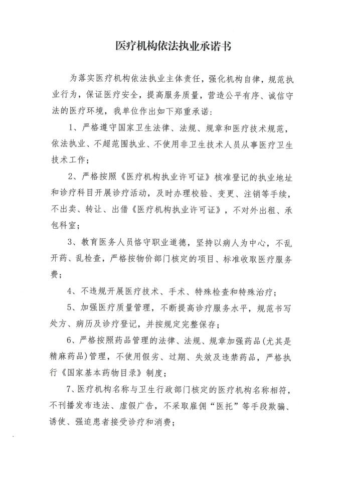 | 名称: | 医疗机构依法执业承诺书 | 文号: | 无 |