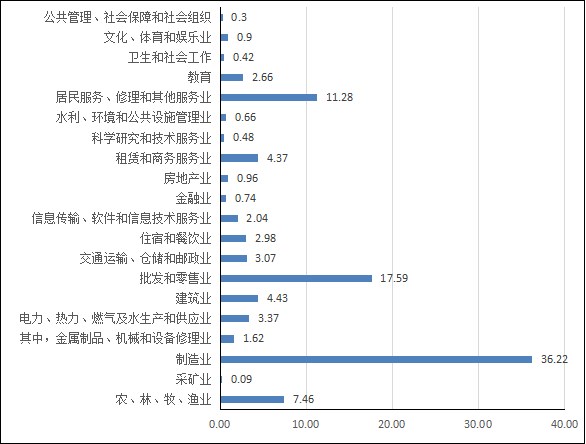 从按行业分组的各类行业需求人数看,制造业需求比重持续占据最高,同比、环比均有所上升,占比36.22%,批发和零售业、居民服务、修理和其他服务业在市场需求人数中分别排第二和第三位,需求人数为7760人和4977人。农、林、牧、渔业为代表的第一产业行业本季度企业需求占比及需求人数均为今年以来最高。