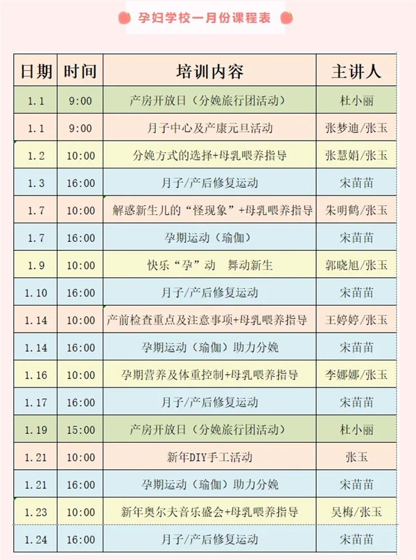 | 名称: | 孕妇学校一月份课程表 |