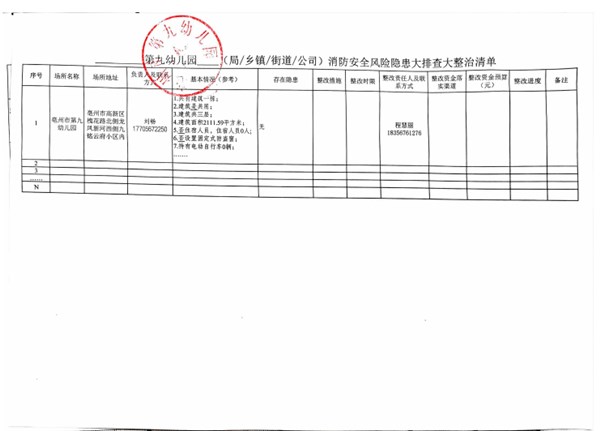 | 名称: | 亳州市第九幼儿园2025年春季安全隐患排查及整改情况 | 文号: | 无 |